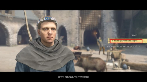Поговорить со стражником, чтобы отправится на поединок с Эриком/Пойти за Жижкой и разобраться, в чем дело