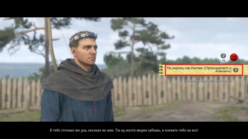 Индржих покинет Сухдол и прибудет в старый военный лагерь. Если перед битвой с Эриком у вас получится успешно пройти проверку, выбрав фразу «Ты умрешь, как Иштван», это немного снизит статы противника и победить его будет чуть легче.
