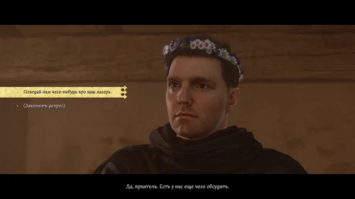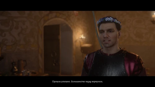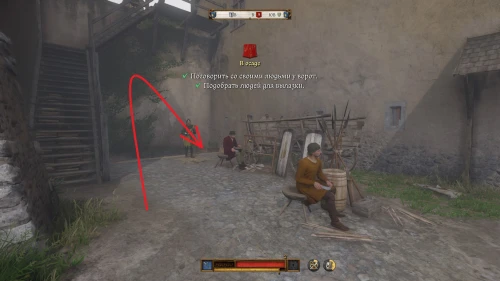 Вернитесь в крепость и найдите атамана в главном зале. Сообщите ему о том, что ваши компаньоны вернулись и исчерпайте оставшийся диалог. После приказа Жижки следуйте наверх и ложитесь спать.