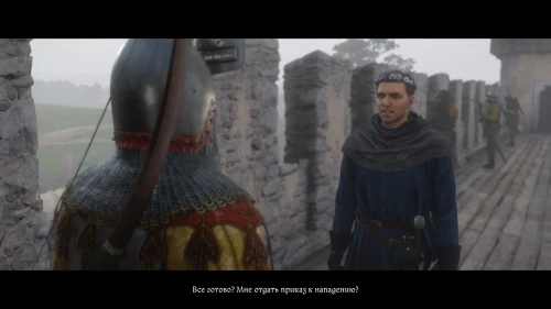 Поговорите с паном Яном, ожидающим вашей команды на южной стене. Перед битвой экипируйте лук и стрелы. Если лука при себе у вас не имеется, вас может снабдить оружием и сам Птачек.
