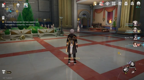 Вы окажитесь в новой области «Палата полубогов: Рассветная вершина». Дожидаясь представителя сената, вы можете посетить две выделенные зоны впереди. Начнем с той, что слева. Здесь вы сможете поболтать с девушкой-писцом, а также решить парочку головоломок (необязательно) и найти обычный сундук.