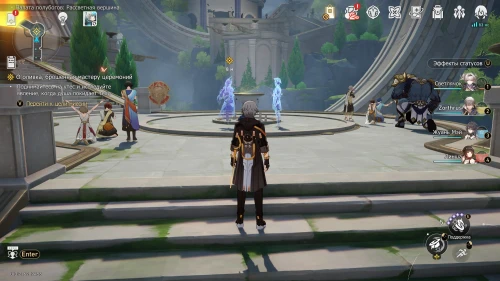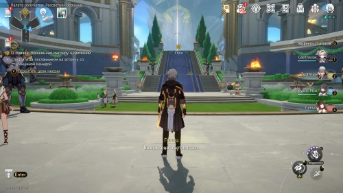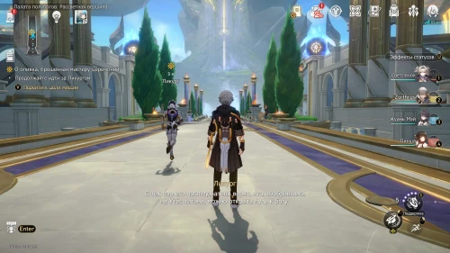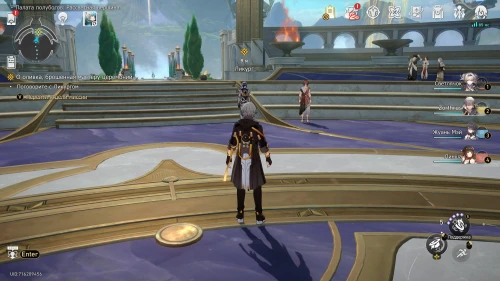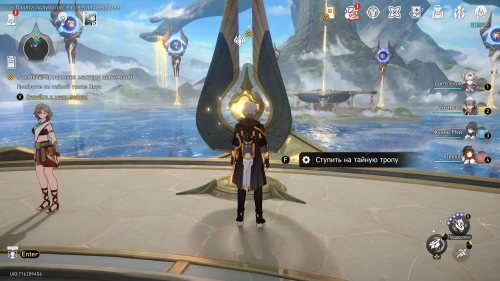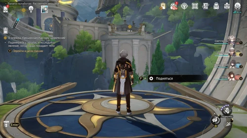 Затем вступите на тайную тропу и двигайте мышку влево, чтобы сформировать рисунок и перенестись на другую сторону. Продолжайте бежать за посланцем, а потом самостоятельно поднимитесь по большой лестнице наверх, где вы обнаружите Кениду. После короткого разговора бегите за ней к центру локации.