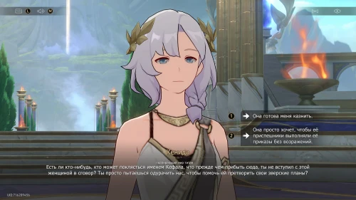 Согласитесь начать переговоры с ней. Она спросит, не вступил ли Анакса в сговор с Аглаей, прежде чем прийти сюда. Вы можете ответить:
