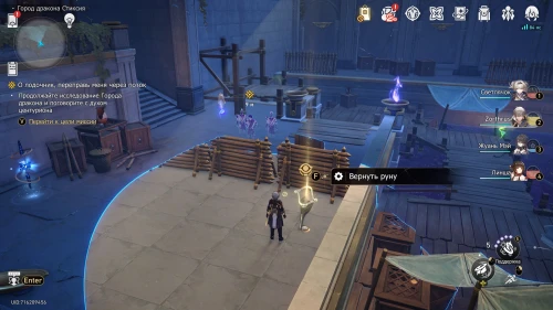 Спуститесь вниз к причалу и взаимодействуйте с Руной воспоминаний, чтобы забрать ее. Теперь вы сможете бегать по реке душ, а прожектор будет освещать ваш путь. Бегите вперед до самого конца, а затем поверните направо и поднимитесь по деревянной лестнице. Продолжайте бежать вперед к квестовому маркеру, активируйте телепорт, а потом разместите руну в другом пьедестале.