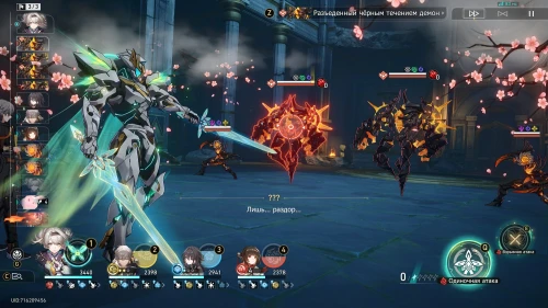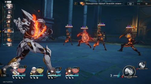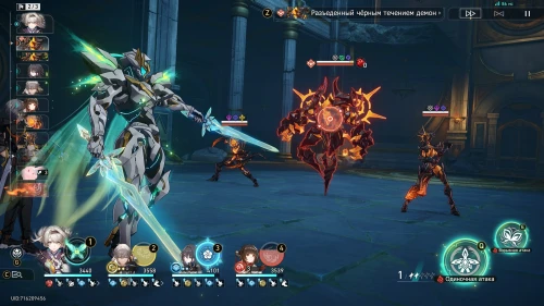 Далее на вас нападет вторая волна противников с Демоном во главе, который может последовательно наносить значительный физический урон случайной цели и накладывать Коррозию. Рекомендуем вам расправиться с ним в первую очередь. В третьей волне драться придется сразу с двумя Демонами, которых однако с одного удара уничтожит Мидей.