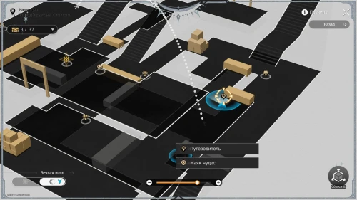 Поверните вправо и спуститесь по лестнице на нижний этаж. Взаимодействуйте с находящейся здесь книгой чудес, чтобы перейти в состояние Рассвета. Тем самым вы разблокируете себе путь вперед. Двигайтесь дальше к подъемнику и поднимитесь с помощью него наверх.