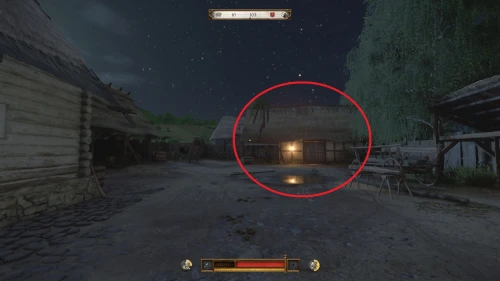 Маркварт будет находиться в здании бывшей корчмы в середине деревни. Однако, область вокруг этого здания будет охраняться и пройти туда просто так вы не сможете.