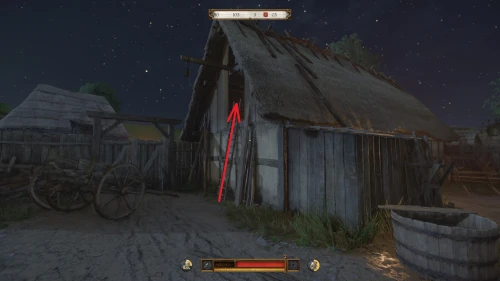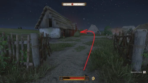 Вызнав пароль, вам нужно получить пражскую одежду. Теперь обойдите деревню по кругу и доберитесь до небольшого домика на юго-востоке. Точное место мы отметили на скриншоте.