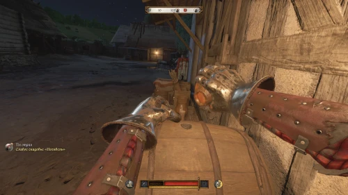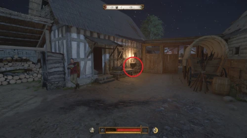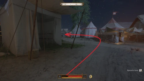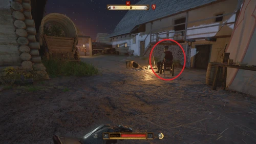 Забравшись наверх, следуйте вправо, и дойдя до конца, спрыгните прямо во двор, где находится Маркварт. За палаткой будет сидеть солдат у которого находится ключ от единственной двери в корчме, которая будет заперта на очень сложный замок.