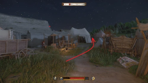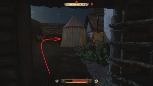 От двора, где вы нашли Шмуэля и Брабанта, следуйте через дорогу к палаткам, как указано на скриншотах. Пройдя через все палатки, зайдите в соседний двор через проход в каменной изгороди.