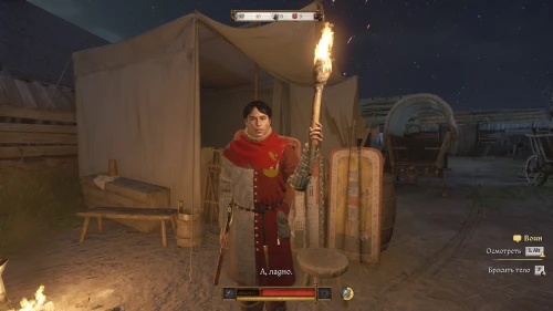 Если вы при штурме Малешова отказались от поджога деревни, вы можете пройти проверку на красноречие. Стражник поблагодарит и пустит вас в лагерь, рассказав при этом, где искать лошадей. После диалога конюшня будет отмечена на вашей карте.