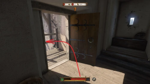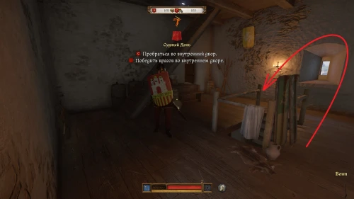 После выстрела, вооружитесь мечом и встаньте в дверях, чтобы никто из врагов не смог атаковать вас со спины.