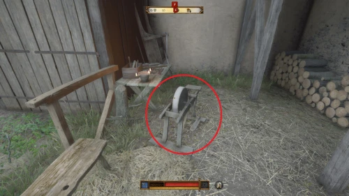 Точильное колесо вы найдете тут же, во внутреннем дворе, ориентируясь на квестовый маркер. Выберите «Меч Гануша» и заточите его до максимального состояния.