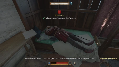 Завершив диалог, выйдите из крепости и следуйте за квестовым маркером, чтобы снять Шмуэля из петли, помолиться и подготовить его к погребению.