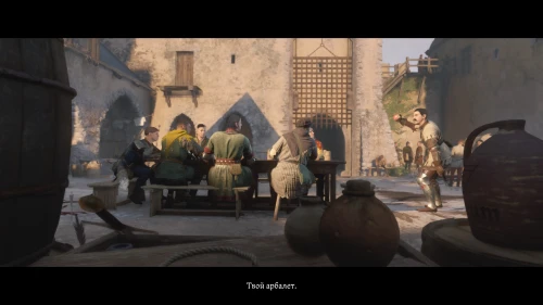 После этого вы увидите катсцену празднования поражения Сигизмунда и пражского войска. В итоге Жижка получит в глаз стрелой из арбалета Сухого Черта.