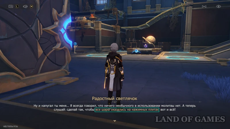 Голубое насекомое предложит посмотреть на артефакт, находящийся в зале к северу от якоря «Храм времени» (поднимитесь на лифте, чтобы активировать этот телепорт). Проследуйте в здание, помеченное квестовой меткой, и выслушайте нимфу — крылатый коротко объяснит, как решить челлендж с каменными шарами.
