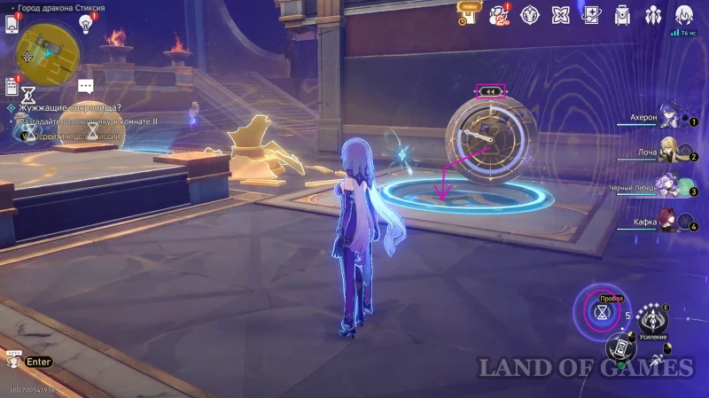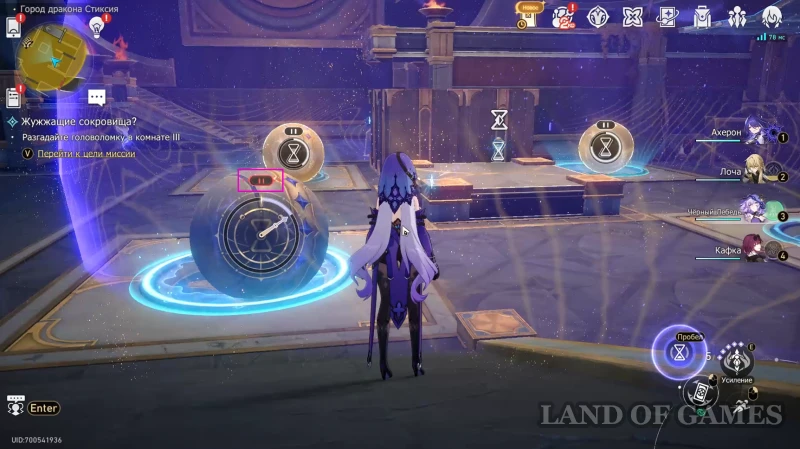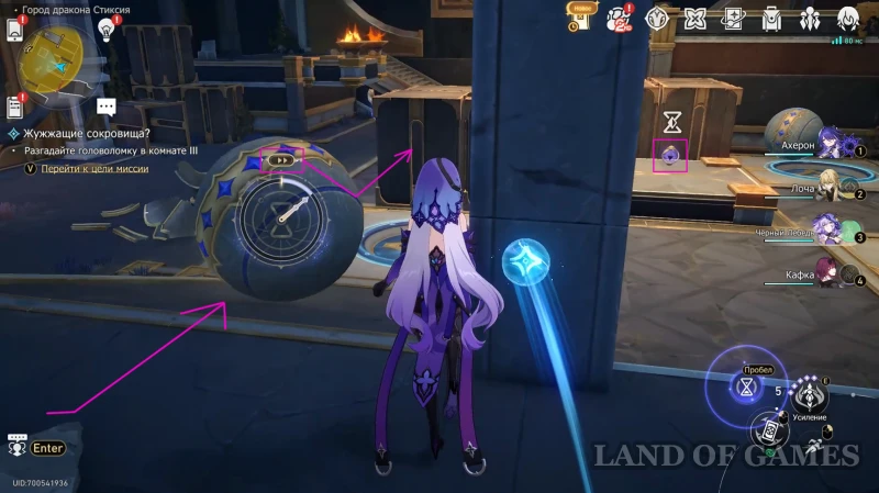 - Сломайте Сосуд времени, активировав фиолетовый барьер над областью;