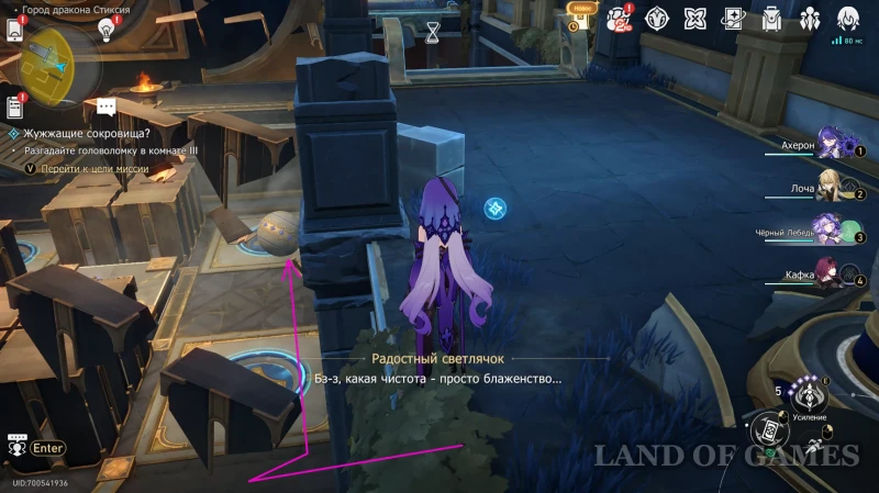 Поговорите с радостным светлячком и продолжайте поиск сокровища