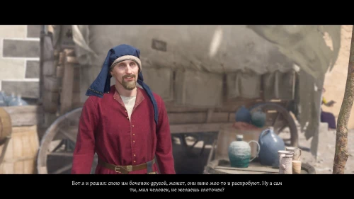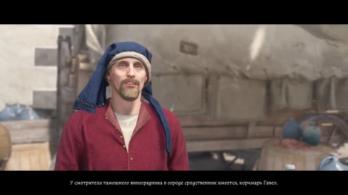 Чтобы притвориться иностранным сомелье, Индржиху необходимо иметь максимум обаяния, в противном случае корчмарь Гавел наотрез откажется начинать разговор. Посетите купальню и портного, чтобы купить новую одежду повышающую харизму до 25 единиц.