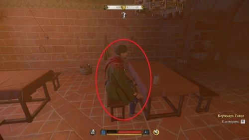 Следуйте за квестовым маркером и зайдите в корчму «Император Карл». Гавел будет сидеть за одним из столов. Начните с ним разговор и согласитесь выпить.