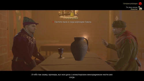 Если по какой-либо причине пустить пыль в глаза Гавелу вам не удалось и он завершил ваш диалог, то после его окончания у вас появится новая задача — найти информацию о монастырском вине в кабинете корчмаря.