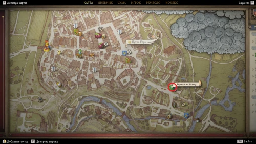 Покинув склад с королевской колбасой, вам придется отыскать бедняков в Кутна-Горе. Никаких конкретных отметок на карте не будет, но мы отметили на скриншоте несколько мест, где обычно собираются нищие.