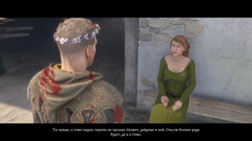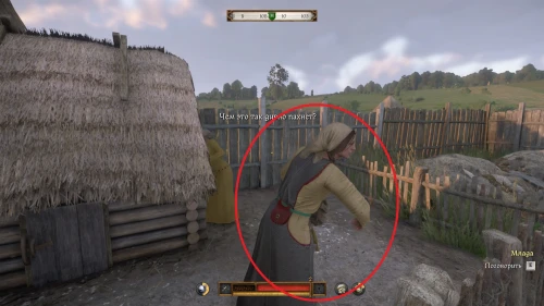 Как только маркер обновится, поговорите с девушкой. Та расскажет что ее муж наконец-то взялся за работу и чувствует себя немного лучше. Однако Млада не будет спешить расстаться с камнем, но уговорить ее будет вполне просто.