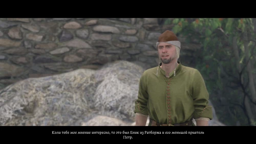 Следуйте в Ратборж, отыщите Петра и потолкуйте с ним. Не важно какие реплики вы будете выбирать — в итоге Петр все равно расскажет вам о том, что камня теперь у него нет. Он с его другом Еником, украли гром-камень у Томлина, чтобы расправиться с солдатским гарнизоном, не дающим житья местным жителям. Однако их план провалился и Еника, у которого был талисман, схватили в плен.