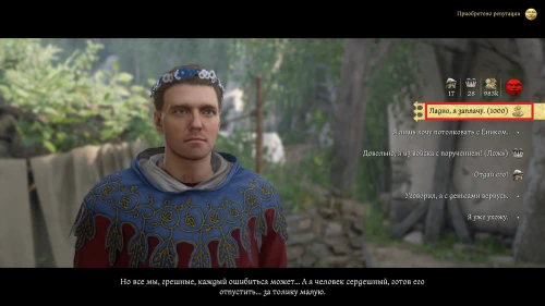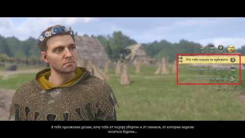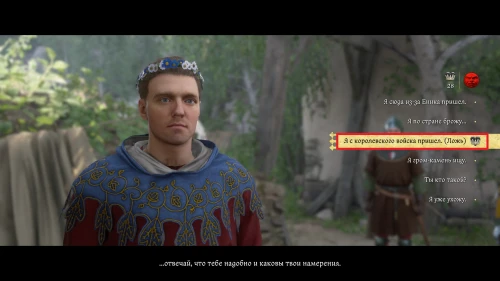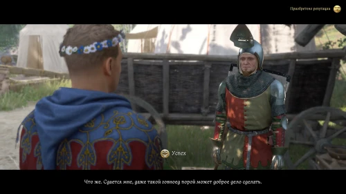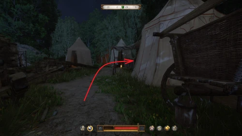 Притворившись же королевским гонцом, и пройдя проверку на превосходство, вас пропустят безо всяких проблем. Вместе с возможностью свободно перемещаться по лагерю, вас наградят 150 грошами.