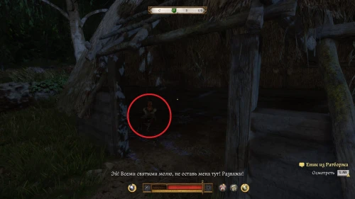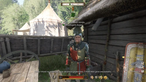 Еника вы найдете связанным в деревянной хижине в задней части лагеря. Развяжите его руки и переговорите с ним.