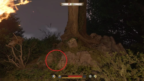 Прежде чем убежать, Еник поделится с вами местом, где бандиты складывали награбленное. После этого на вашей карте появится маркер «два мертвых дерева». Там вы отыщите небольшой холмик и два сухих дерева торчащих из него. Прямо под ними, в небольшом углублении вы найдете кувшин с грошами.