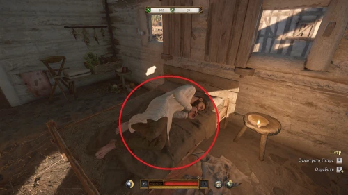 Перед тем, как разговаривать с мужем Млады, поговорите со всеми обитателями дома, чтобы узнать хоть какую-то информацию о состоянии Петра. Поденщик расскажет что Петр физически здоров, но начал терять рассудок после поездки в Колин.