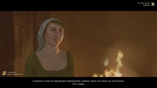 Решив отдать талисман травнице Коне, вы получите скидку при покупке лошади в местной конюшне и обучение алхимическим навыкам. Также девушка вознаградит вас рецептом снадобья вода Леты и предложит взять 100 грошей.