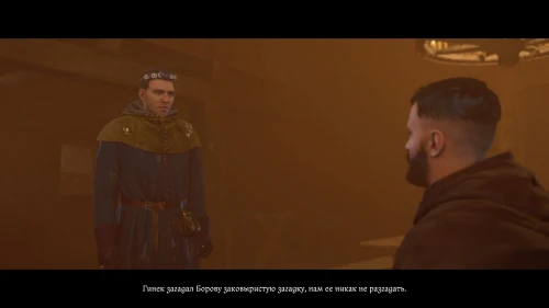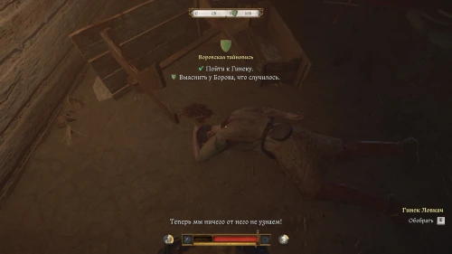 Войдите внутрь и отыщите Борова с Гинеком. Однако к этому моменту вор уже будет убит. Начните диалог с Боровом и узнайте что произошло. Боров признается в том, что случайно убил Гинека, но перед смертью тот успел сообщить ему про некую записку.