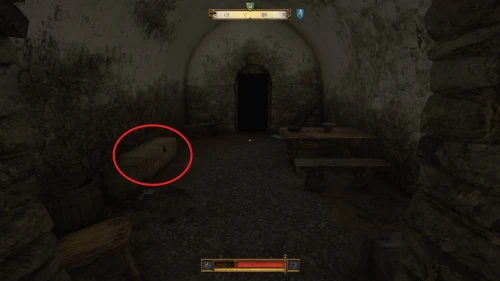 Еще раз переговорите с Боровом и выслушайте его просьбу не рассказывать Ченеку о произошедшем. Перед тем как следовать далее, отыщите в доме Гинека комнату с кинжалом, воткнутым в косяк двери. Войдите внутрь и взломайте сундук с простым замком и заберите ключ от погреба, который вскоре может вам понадобиться.