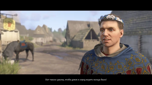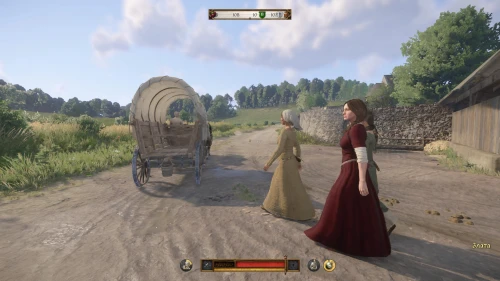Поговорив с будущими мыльщицами, следуйте за ними и заберитесь верхом на телегу. Вы можете как поболтать с ними по дороге, так и изначально отказать им в разговоре, чтобы стриггерить быстрое перемещение.