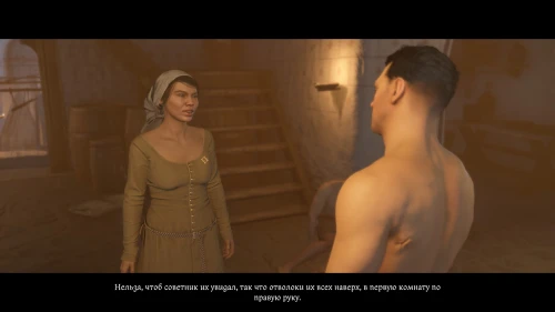 Как только все будет готово, Бета вместе с советником Орнджеем начнут обходить кухню и купальни. Подождите пока советник осмотрит все помещения и снова выйдет на улицу. Следуйте за ним и выслушайте его вердикт.