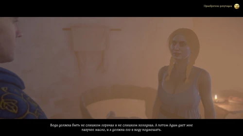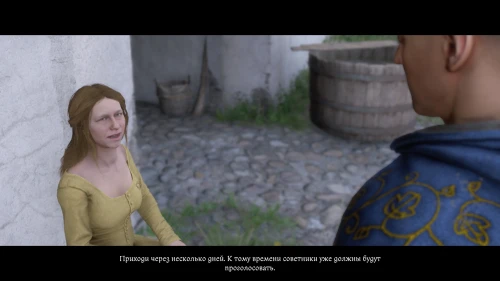 После дуэли возвращайтесь к Бете и поделитесь с ней неплохими новостями. Однако хозяйка продолжит сомневаться в том, что ее баня станет городской — голосов все еще будет мало. Завершите диалог и переждите пару дней, пока не пройдет собрание.