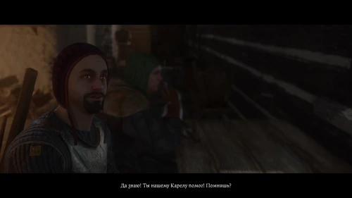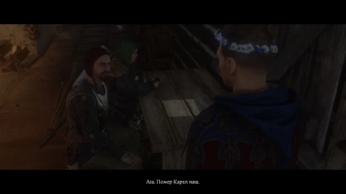 Отыщите бандита по имени Горюн за одним из столов и поговорите с ним. Горюн вспомнит, как вы ранее помогли Карелу Лбу притащить мешки в лагерь и сообщит печальную новость — Карел погиб.