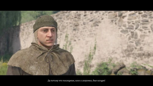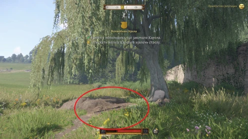 После того, как вы успешно уговорите мужчину рассказать, где захоронен Карел, он укажет на свежую могилу за монастырскими стенами, прямо под большой ивой. Отыщите дерево и осмотрите свежую могилу. Рядом также будет находиться лопата, если ее нет в вашем инвентаре.