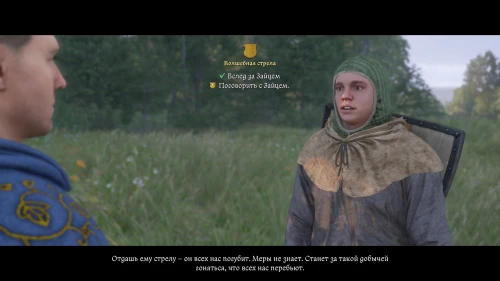 По завершении диалога бегите за Зайцем, при желании отвечая на его вопросы. Где-то на половине пути до места назначения, Заяц остановит вас и потребует отдать волшебную стрелу именно ему. Если вы согласитесь вручить стрелу Зайцу, чтобы обезопасить бандитов шайки от бредовых затей Горюна — награды вы не получите.