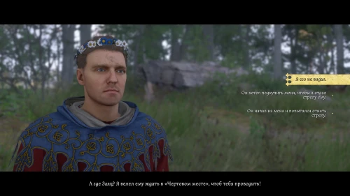 Как только наконечник волшебной стрелы окажется в вашем инвентаре, задание обновится. Вернитесь в «Чертово место», где вместо Горюна вас будет ожидать другой бандит по имени Заяц. Он поведает о том, что Горюн попросил его провести Индро в лагерь, когда тот вернется с талисманом Карела.
