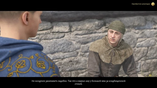 Хоть область поиска и будет захватывать все кладбище, узнать где похоронен Карел вы сможете лишь расспросив местного могильщика. Отыщите его ориентируясь на отметку на карте, и начните с ним разговор. Однако, могильщик откажется поделиться с вами нужной информацией, ведь Лба похоронили как колдуна.
