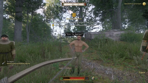 Однако если вы промажете и стрела улетит в неизвестном направлении, Горюн разозлится и прикажет своим парням напасть на вас. В этом случае, чтобы получить хоть какие-то гроши вам придется угомонить несколько крепких бандитов и собрать с них весь лут.