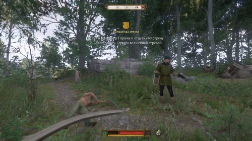 Теперь Горюн переживает, что его шайку ждет незавидное будущее без Карела и его «волшебной» стрелы. Он предложит Индро отыскать тело бандита, достать стрелу и принести ее в корчму. Согласившись на такое необычное задание, вы начнете данный квест.