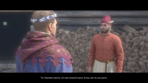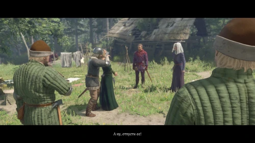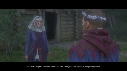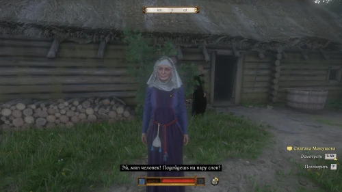 Разобравшись с Ханкой, зайдите в домик и потолкуйте со Сватавой. По окончании разговора женщина услышит шум за дверью и попросит Индржиха проверить, не заявился ли к ним очередной разбойник.