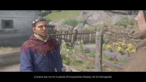 После того как задание обновится, следуйте на север деревни и отыщите Слухача на местной ферме. Рассказывать что-либо о Микуше мужчина откажется. Вам необходимо пройти все доступные проверки до самого конца диалога, чтобы Слухач все таки поделился с вами о том, что произошло и в каком направлении нужно искать пропавшего.