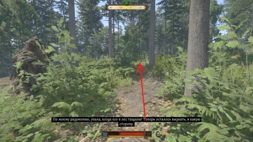 Осмотрите лужу и следуйте по следам крови на тропинку слева. Бегите далее и подберите с земли шляпу Микуша.