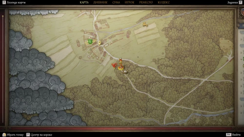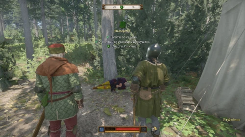 Теперь вам нужно следовать прямо на юго-запад, пока в лесу вы не наткнетесь на палатку с разбойниками и раненым Микушем.