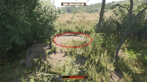 От середины деревни следуйте на юго-восток по главной дороге, пока не доберетесь до развилки. Следуйте по правой дороге и, немного погодя, снова сверните направо. В западной стороне опушки вы отыщите тележку, лопату и то самое место, где было закопано сокровище.